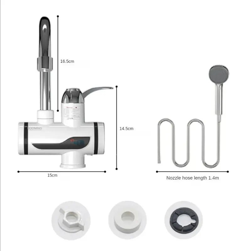 Upgrade your kitchen or bathroom with the Electric Faucet Tap Water Heater with Shower—a smart, modern solution for instant hot water! Designed for ultimate convenience and safety, this tankless water heater ensures you enjoy warm water in just seconds, with added features for your peace of mind.