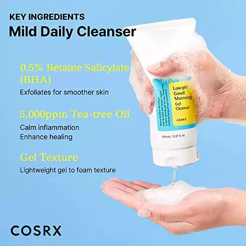 - Wake up to firmer-looking skin and let it rest clean during the night. Experience the difference of a gentle, pH-balanced cleanser with COSRX Low pH Good Morning Gel Cleanser.